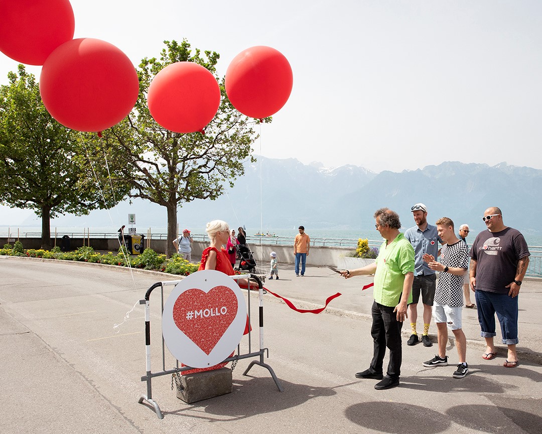 Avec un nombre croissant d’utilisateurs se déplaçant à des cadences différentes, la campagne « Vas-y #MOLLO » désire interpeler les usagers afin qu’ils adaptent leur allure et ouvrent l’œil. Au moyen d’une signalisation au sol et à hauteur des yeux, les quais de la Riviera arboreront le thème graphique de cette campagne dès la mi-juin et jusqu’à fin septembre en passant par le quai Perdonnet à Vevey et Montreux.