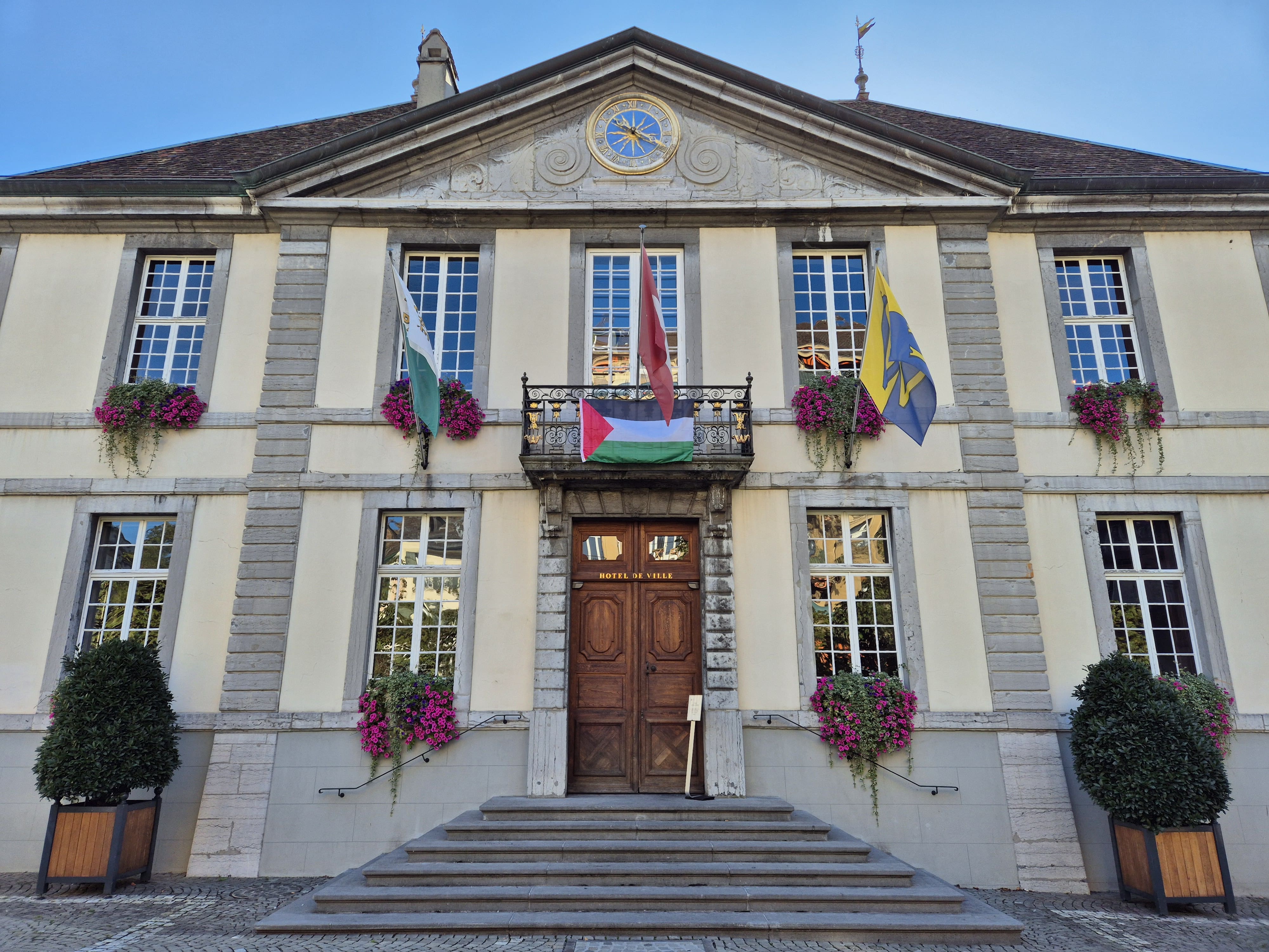 Face à la crise des droits humains et la catastrophe humanitaire à Gaza, et afin de réitérer sa solidarité envers les victimes de ce qui peut être considéré comme un génocide, les autorités veveysannes ont décidé de hisser un drapeau palestinien sur le balcon de l’Hôtel de Ville dès aujourd’hui et jusqu’au 29 septembre, clôture du débat général de l’assemblée de l’ONU. Cette action intervient pendant la semaine de haut niveau de l’Assemblée générale des Nations Unies et quelques jours après l’adoption de la « déclaration de New York » sur le règlement pacifique de la question de la Palestine et la mise en œuvre de la solution des deux États. Elle fait également écho à l’annonce, par certains pays, de la reconnaissance de l’État palestinien.