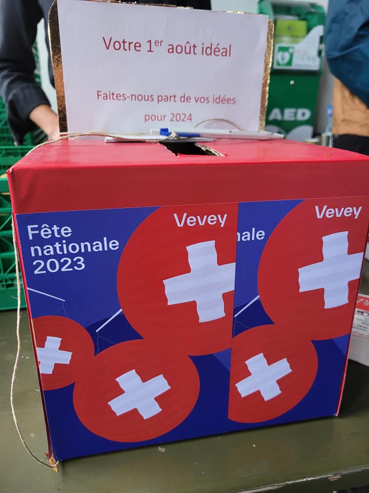 Lors des célébrations du 1er août 2023, les Veveysannes et Veveysans ont eu la possibilité de faire part de leurs idées et envies en matière d’animations autour de la Fête nationale. Plus de cinquante bulletins ont été récoltés dans les boîtes à idées disposées à cet effet, confirmant, pour la majorité, le souhait d’agrémenter les éditions à venir avec un nouveau programme festif.