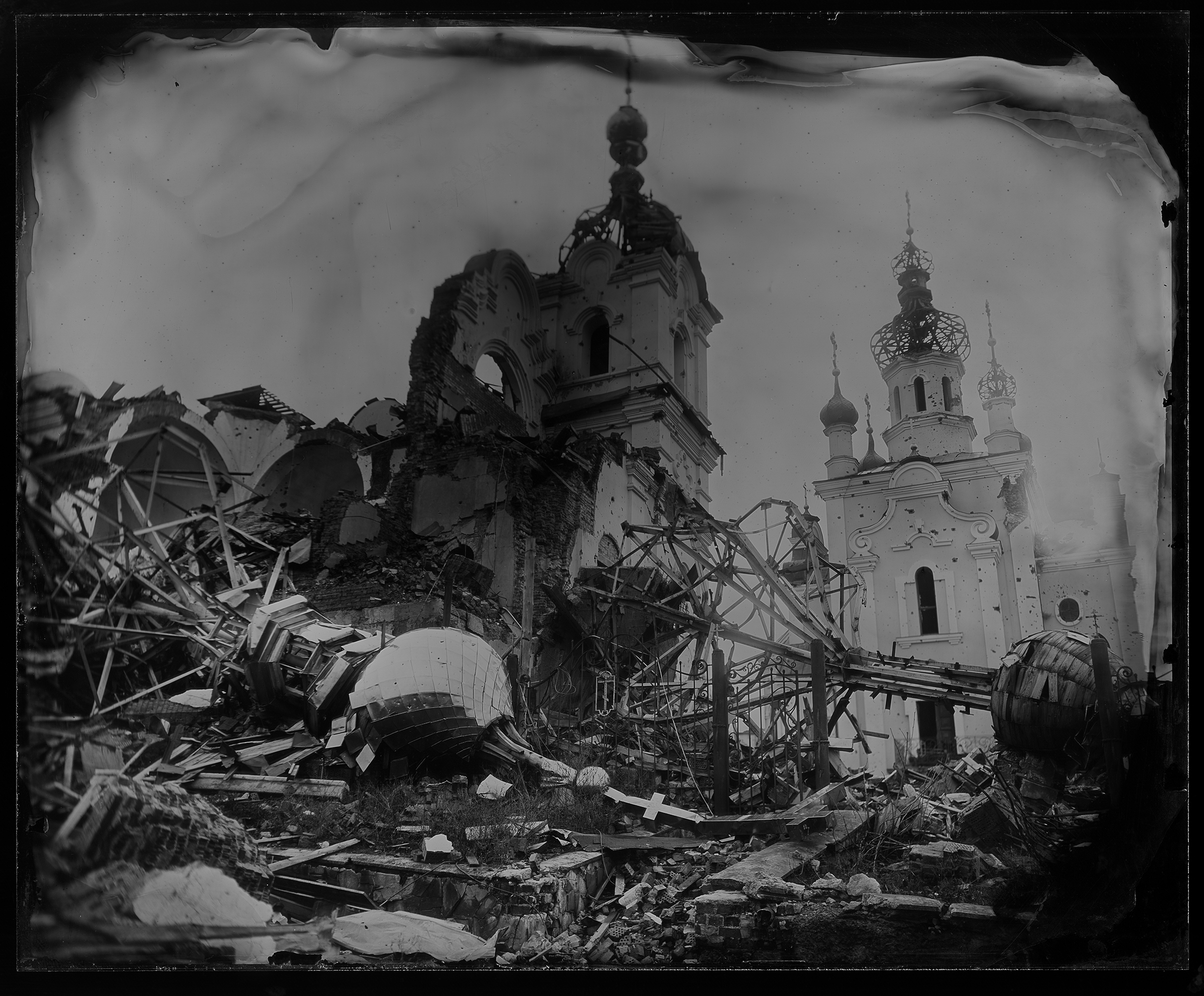 Son approche est unique et saisissante : s’emparant de la technique historique du collodion humide – qui nécessite de déplacer avec soi son laboratoire et des plaques de verre fragiles –, il a sillonné le Donbass pour rencontrer et photographier les soldats et les civils touchés en première ligne par le conflit. A contre-courant de l’immédiateté de la photographie de guerre classique, le procédé impose une lenteur, un recul et une vraie rencontre avec la population lui permettant, dans ce contexte, d’agir à sa manière : « Je ne crois pas que la photographie puisse mettre fin à la guerre, mais elle me donne une raison de continuer à faire mon travail. De faire ce que je fais de mieux avec ma souffrance et ma compassion », explique-t-il.