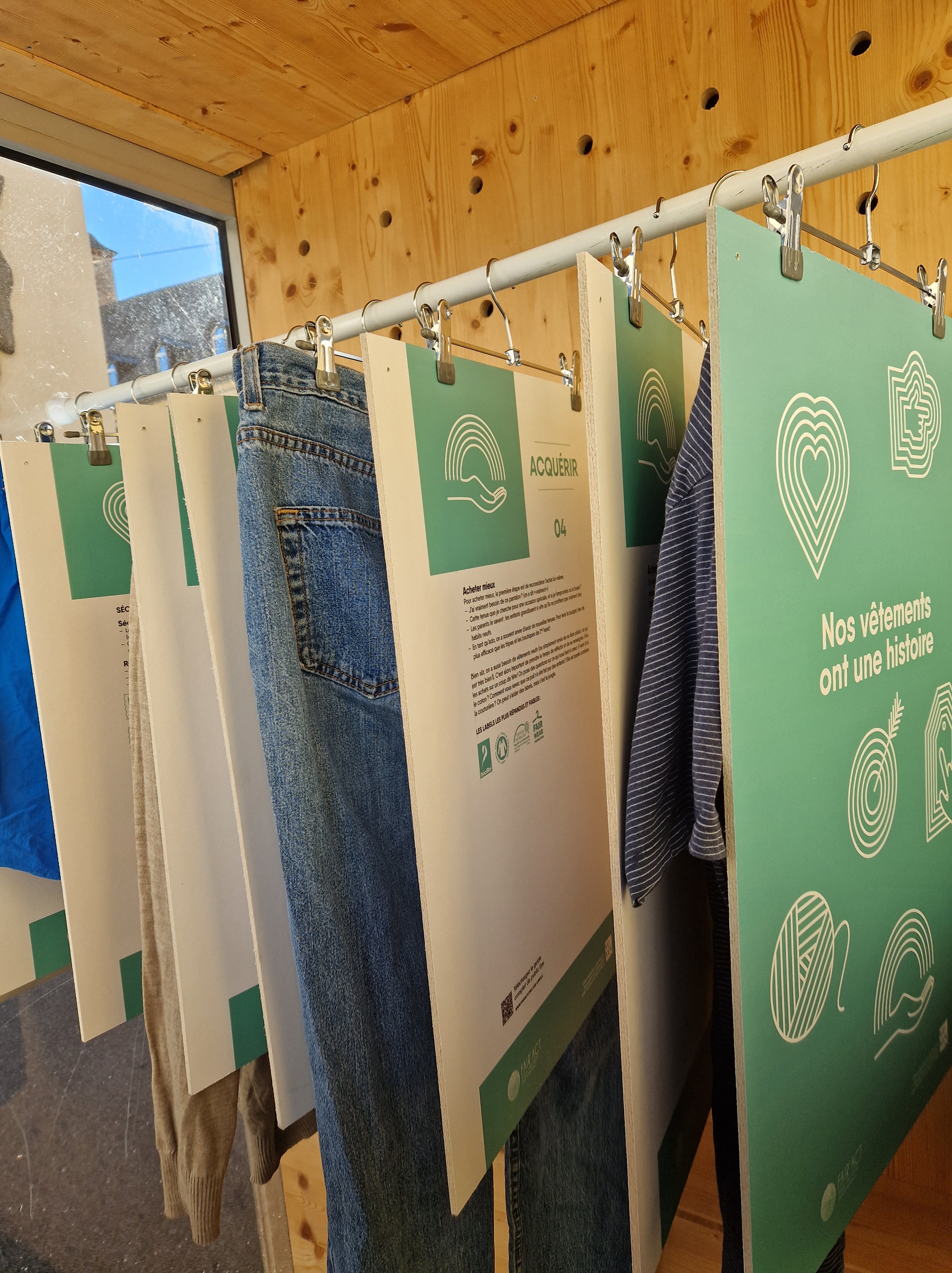 Fruit du travail de l’association Fair’Act, cette exposition vise à rendre accessible au grand public les enjeux liés à la consommation vestimentaire. Elle permet également d’avoir un aperçu de solutions plus durables environnementalement, qu’il s’agisse d’informations sur les matières premières, de propositions concernant la manière d’acquérir des vêtements ou de conseils d’entretien pour assurer un usage pérenne des textiles.