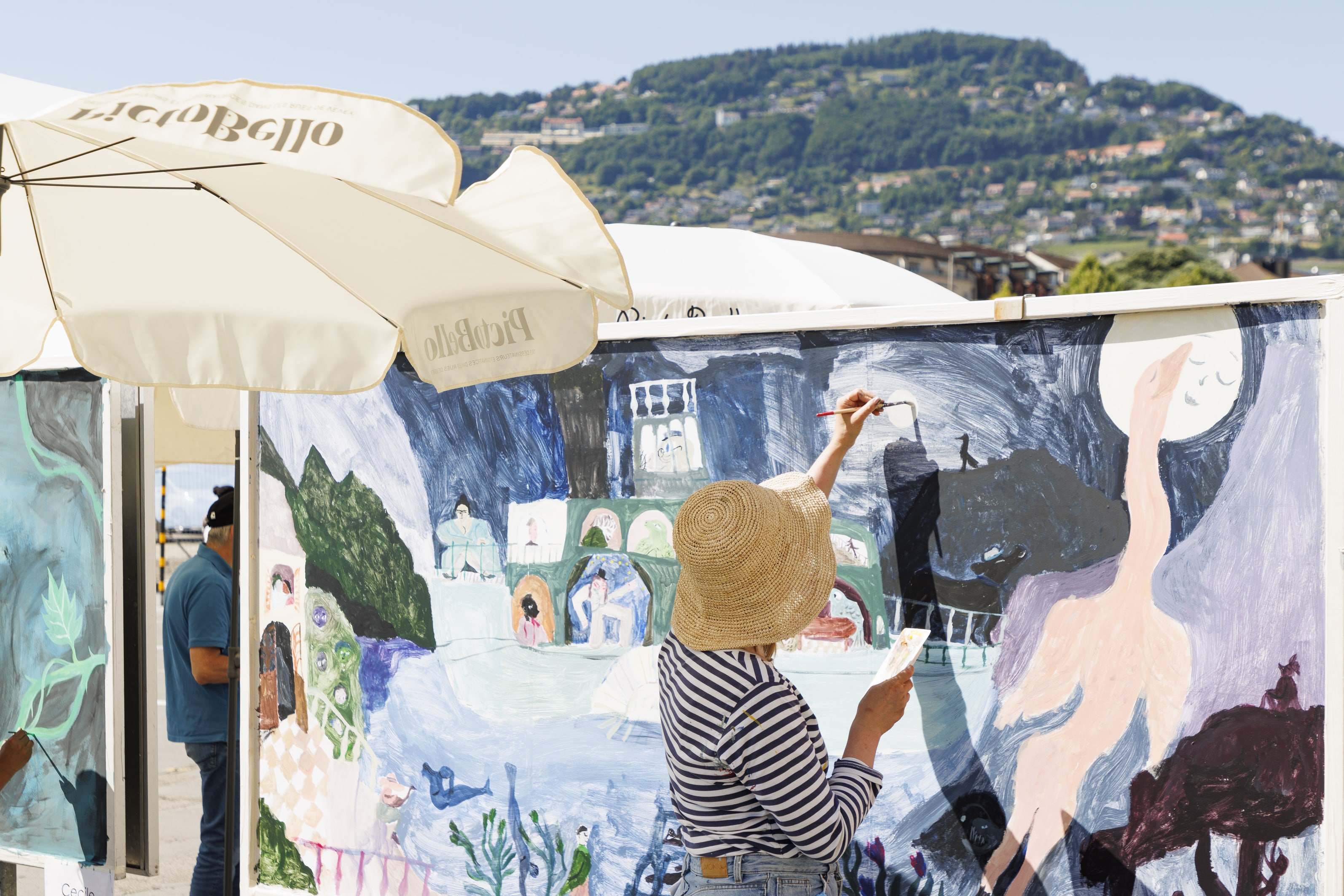 Fidèle à son ADN, PictoBello maintient sa journée de dessin traditionnelle qui verra vingt artistes de Suisse et d’ailleurs réaliser en une journée des œuvres sur panneaux dans les rues de Vevey, sous le regard des passantes et des passants. Les dessins prendront vie le samedi 22 juin entre 10h et 18h dans différents lieux veveysans (place de la Gare, Grenette, quai Perdonnet, place de l’Hôtel-de-Ville et jardin du Musée Jenisch Vevey) et seront vernies dès 18h30 sous la Grenette en présence des artistes. Les œuvres picturales resteront visibles dans les rues de Vevey jusqu’au dimanche 7 juillet et feront ensuite l’objet d’une publication.