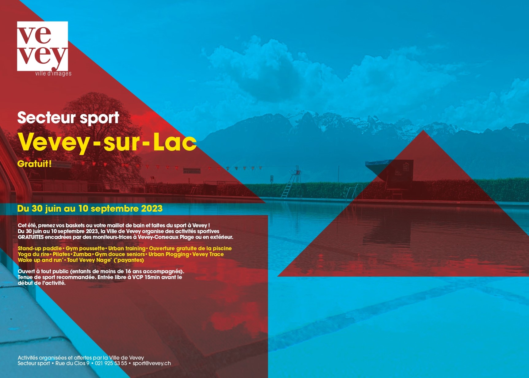 La quatrième édition du programme « Vevey-sur-Lac » se déroulera du vendredi 30 juin au dimanche 10 septembre prochain. Elle proposera différentes activités sportives (stand-up paddle, yoga du rire, pilates, zumba, urban training, gym douce seniors et gym poussette) à la piscine de Vevey-Corseaux Plage ou en extérieur, sous la supervision d’une équipe de monitrices et moniteurs qualifiés. L’entrée à la piscine sera gratuite pour toutes les participantes et participants à ces activités. La première édition de la course « Wake up and run » lancera le programme ce vendredi 30 juin à 5h30 au Jardin du Rivage (inscription payante). Ce dimanche dès 10h30 aux Bains Payes, place à l’Urban Plogging, course de ramassage de déchets au bord du lac.