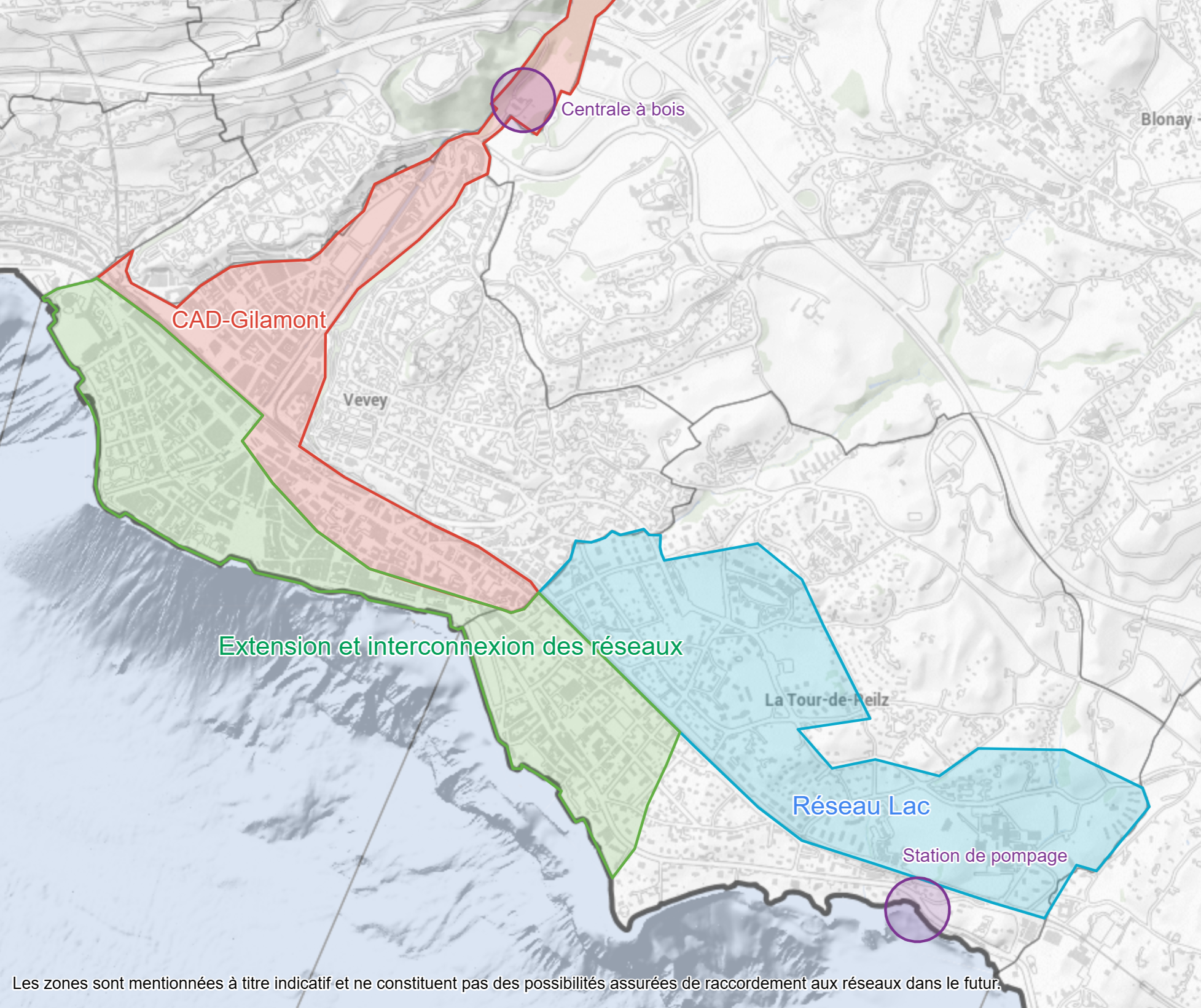 Dans le but de répondre à ces ambitions et d’accélérer la transition énergétique, les deux Villes de la Riviera et Groupe E ont lancé une collaboration tripartite visant à étudier et développer un important réseau thermique (RET) intercommunal. Celui-ci se réalisera au travers de l’extension et l’interconnexion des deux réseaux thermiques en place déjà exploités par Groupe E : la centrale à bois du CAD-Gilamont à Vevey et le Réseau Lac à La Tour-de-Peilz. Ces deux réseaux font partie de la soixantaine de chauffages à distance qu’exploite Groupe E dans l’ouest de la Suisse.